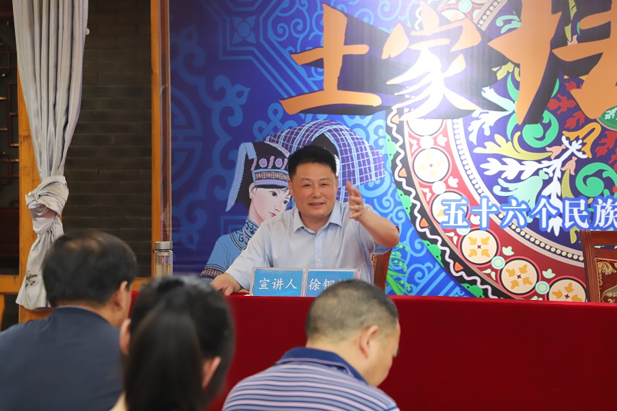 6月20日,湖北民族大学宣讲团围绕“流域综合治理和共同缔造”这一主题赴鹤峰县燕子镇开展理论宣讲和座谈活动。这是今年5月湖北民族大学鹤峰县燕子镇实践基地被湖北省委宣传部、省委讲师团评为“2022年度优秀‘理论热点面对面’实践基地”后的首次宣讲活动。湖北省委讲师团一级调研员胡秋春、三级调研员姚官华,恩施州委理论信息中心主任向文锋,湖北民族大学党委宣传部常务副部长罗翔宇、马克思主义学院院长徐铜柱及燕子镇石龙洞村40余名群众代表参加本次活动。鹤峰县委常委、县人武部长陈澍、县委宣传部常务副部长王怀俊、燕子镇镇长柳远新参加本次活动。
