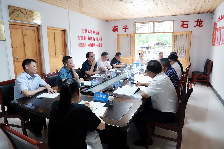 6月20日下午,实践基地建设座谈会在燕子镇石龙洞村委会会议室举行。罗翔宇介绍了四年以来湖北民族大学作为基地对口建设单位的基本情况、具体职责、主要工作及基地建设成效。王怀俊就鹤峰县委宣传部作为基地建设的衔接单位,对县委宣传部在基地建设中的角色定位、职责分工和后续工作进行交流。柳远新代表燕子镇对基地建设的具体过程、主要成绩和未来展望进行了汇报。