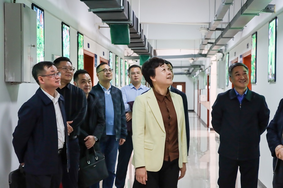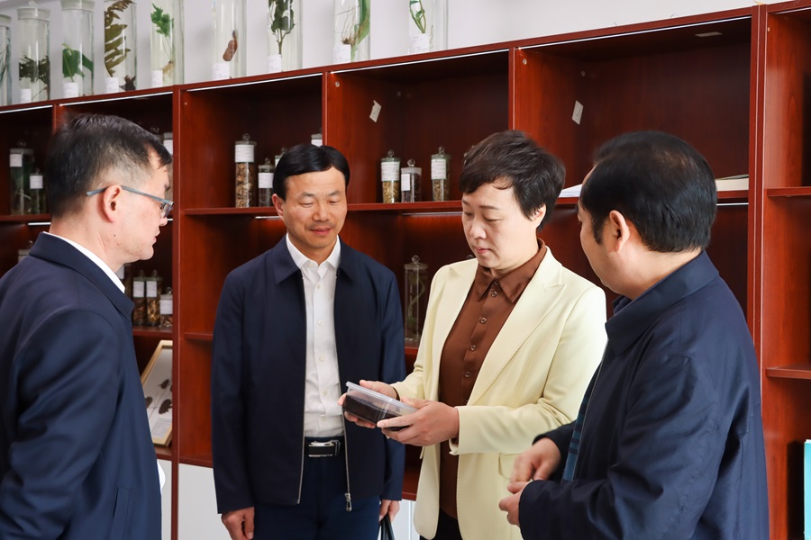武陵山中药材检验检测中心主任颜益志向张远梅一行介绍了检测中心建设及功能布局情况。张远梅现场参观了部分大型仪器设备,了解其检测功用,并详细询问了中心建设方面亟待解决的困难。张远梅充分肯定了学校在推动中药材服务地方经济发展方面取得的成绩,并感谢学校为实现全州高质量发展所作的努力和贡献。她强调,湖北民族大学应该依托武陵山中药材检验检测中心,设立研发基金;立足高品质的中药材,加强与企业的沟通协作,不断加大中药材产业化的推广力度。