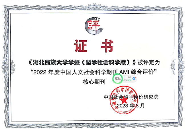 2023年3月,《湖北民族大学学报(哲学社会科学版)》被评定为“2022年度中国人文社会科学期刊AMI综合评价”核心期刊