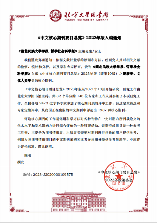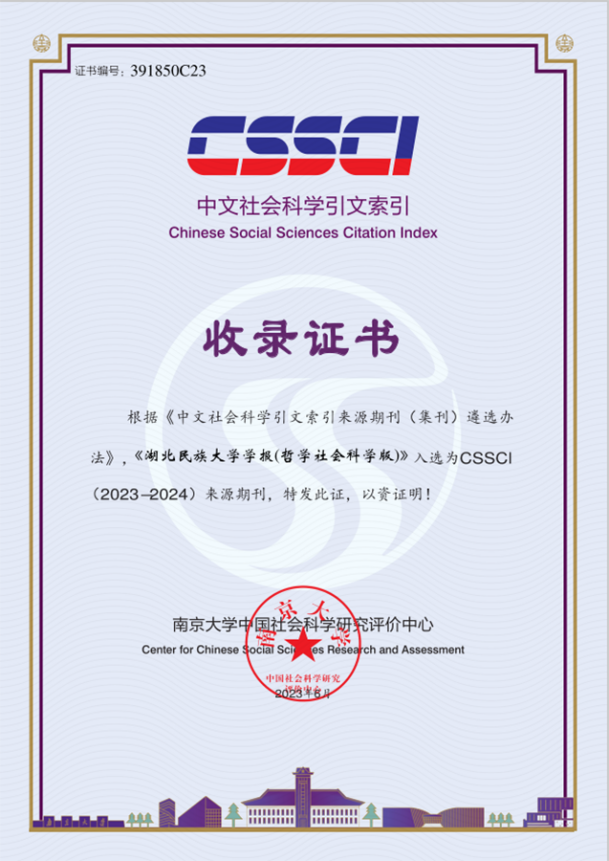 2023年6月,《湖北民族大学学报(哲学社会科学版)》入选CSSCI(2023—2024)来源期刊