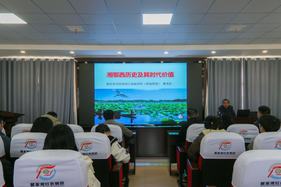 仪式结束后,师生在洪湖市瞿家湾镇人大主席张伟带领讲解下,开展了“缅怀革命先烈,传承红色基因”的实践教学活动,瞻仰了烈士纪念碑,参观了洪湖市湘鄂西革命根据地旧址纪念馆。在瞿家湾镇党群服务中心会议室,湖北省党校系统瞿兆松教授作《湘鄂西历史及其时代价值》专题辅导报告。他从“以洪湖为中心的湘鄂西苏区的重要地位”“湘鄂西苏区以洪湖为中心的原因”和“洪湖精神是湘鄂西苏区形成的革命文化”三个方面进行了系统讲授。