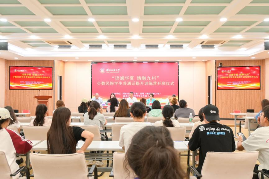 5月22日,由学生工作部(处)、湖北民族大学国家语言文字推广基地、教师教育学院联合举办的“语通华夏,情融九州——少数民族大学生普通话提升计划”普通话提升训练营开班仪式在德智楼三楼远程教学观摩室举行,各民族学生代表60余人参加活动。