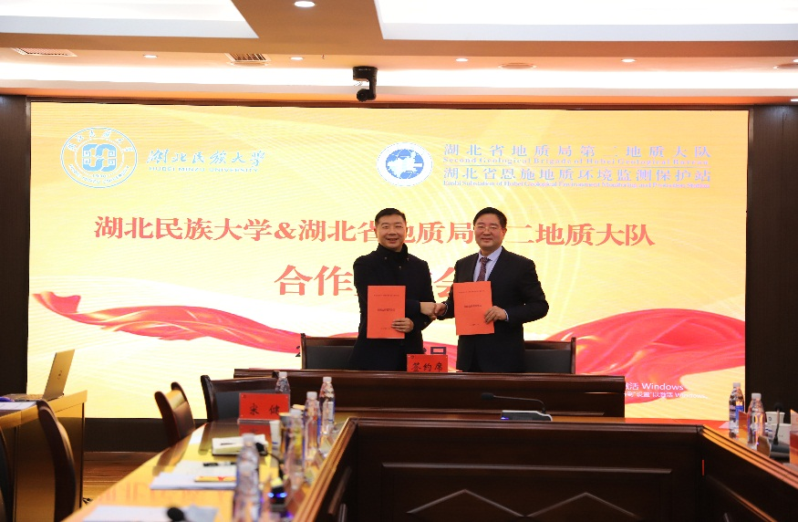 湖北民族大学地质林学产教融合实践创新基地签订合作现场