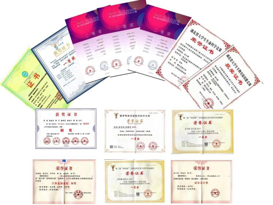 学生在各类大赛获奖证书(部分)